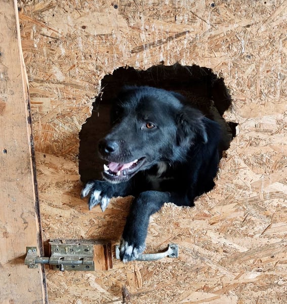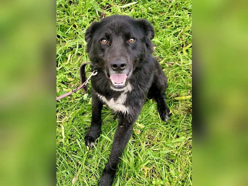 Boris Mix Junge, geboren am 01.04.2020, hat eine Schulterhöhe von ca. 55 cm und wiegt ca. 22 kg.