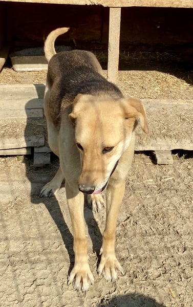 Noelle, Mischlingsmädel, geboren ca. 2016, hat eine Schulterhöhe von ca. 60 cm und wiegt etwa 20 kg.