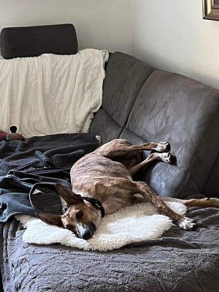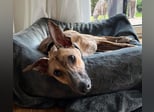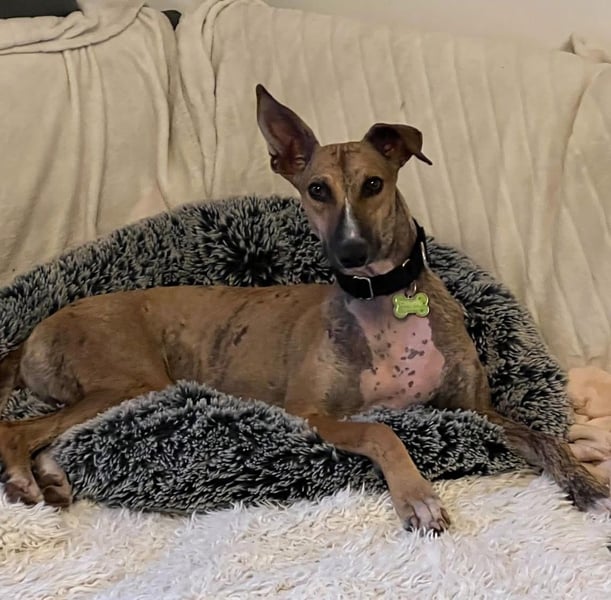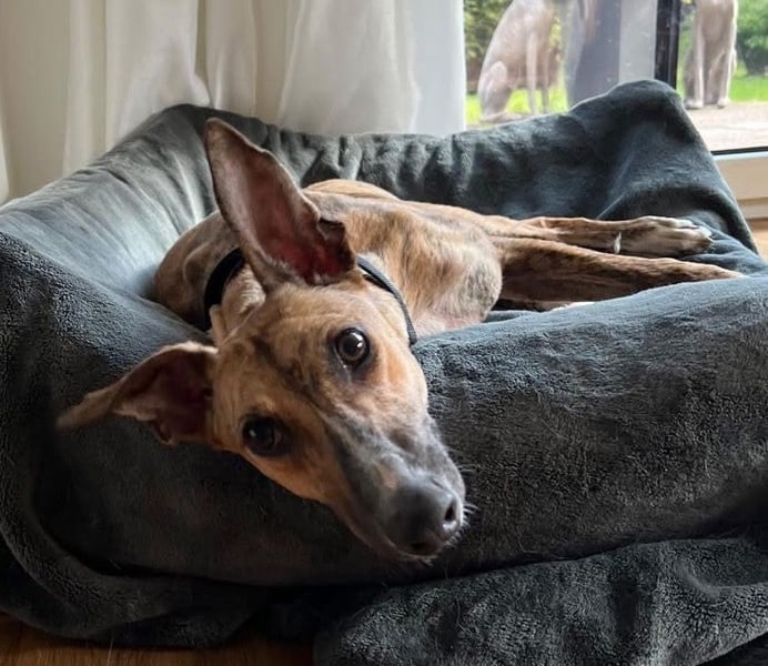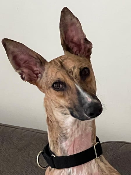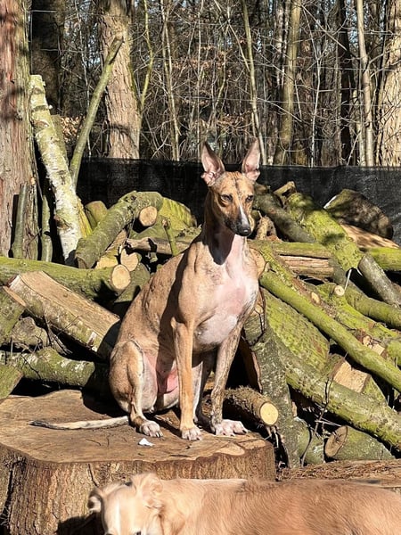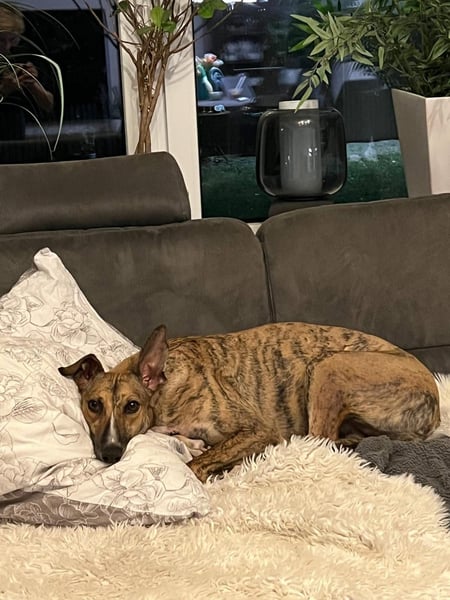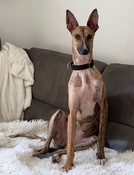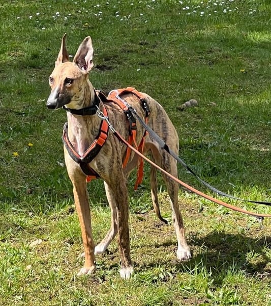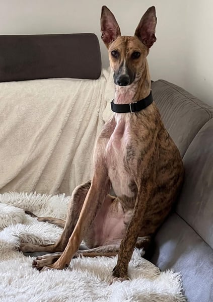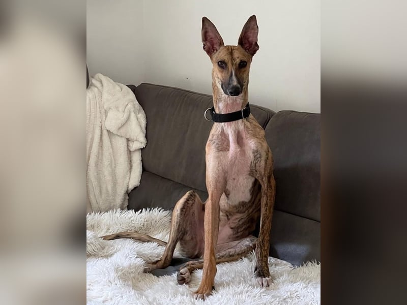 Pandorra, rumänische Windhündin, geboren am 01.08.2023, hat eine Schulterhöhe von ca. 60 cm und wiegt etwa 24 kg.