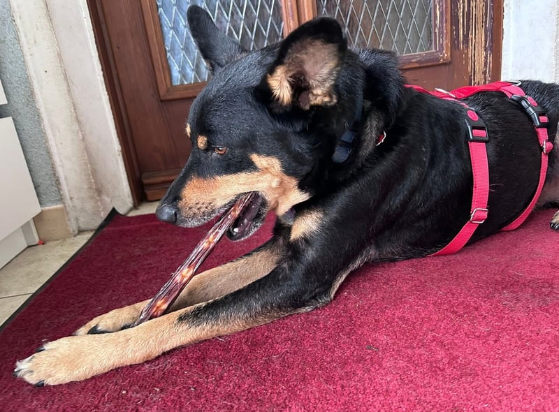 Er lebt auf seiner Pflegestelle im gemischten Rudel, mit drei Kindern, einer Katze und natürlich den Pflegeeltern zusammen.