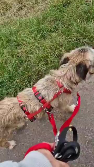 Auch das Gassi gehen klappt ganz gut. Wenn sie entspannt ist, geht sie draußen schön an der Leine. Manche Dinge/Situationen (z.B. Rollerfahrer) sind ihr noch nicht geheuer, aber mit einer guten Anleitung des Menschen wird sie nicht panisch und lässt sich gut lenken.