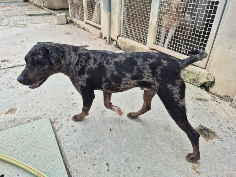 An Grausamkeit fast nicht zu überbieten…..Als Tierschützer sieht mal viele schlimme Dinge, aber was Arcadio widerfahren ist, läßt einem schon den Atem stocken. Der ca. 3 Jahre alte Rüde wurde mit einer bösen Schußwunde auf Sardinien gefunden. Die Kugel traf sein linkes Auge und trat oben am Kopf wieder aus. Wollte sich jemand auf diese Weise des Hundes entledigen oder ist Arcadio „zufällig“ einem Jäger vor die Flinte gelaufen? Er wurde seinem Schiksal überlassen, durch ein Wunder gefunden, in eine Klinik gebracht und sofort notoperiert. Nach seinem stationären Aufenthalt ging es für ihn in ein Canile. Der Arzt hat außer dem Verlust des Auges keine weiteren Einschränkungen festgestellt. Er ist ein fröhlicher, freundlicher Hund, der nun ganz dringend nach seiner Leidensgeschichte, ein liebevolles Zuhause verdient hat. Über sein bisheriges Leben und welche Rasse in ihm stecken könnte, wissen wir leider nichts. Sie möchten einem außergewöhnlichen Hund ein „Leben“ ermöglichen. Gerne bei mir melden. Arcadio wartet und könnte zeitnah ausreisen.