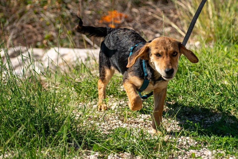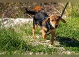 Senta ist ein Jagdhundmix und wird vermutlich mittelgroß. Sie freut sich über den Besuch einer passenden Hunde(halter)schule, in dem ihr gemeinsam das Hunde-Einmaleins lernen (oder auffrischen) und euch noch besser kennenlernen könnt.