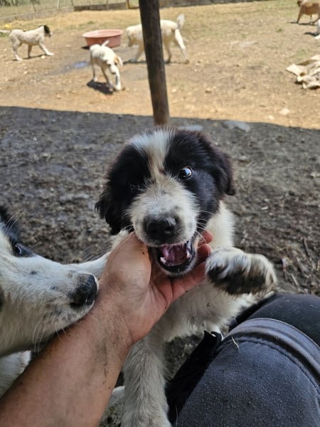 Er ist verspielt, neugierig und voller Energie – ein typischer Welpe, der die Welt entdecken möchte. Mit anderen Hunden versteht er sich hervorragend und zeigt sich sehr sozial.