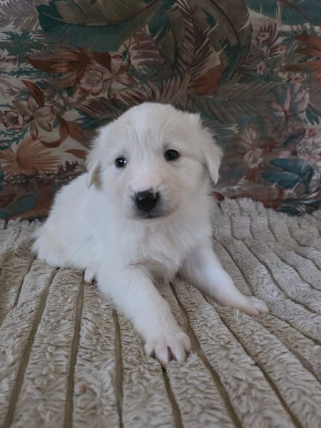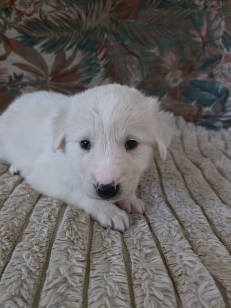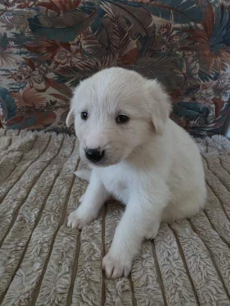 Una ist noch ein ganz kleines Welpenmädchen und zeigt sich typisch für ihr junges Alter. Sie beginnt gerade, die Welt zu entdecken, ist neugierig und entwickelt sich altersentsprechend. Ihre Mutter hat eine Schulterhöhe von etwa 50 bis 55 cm, weshalb wir davon ausgehen, dass Una später ebenfalls diese Größe und ein Gewicht von rund 25 kg erreichen wird.