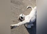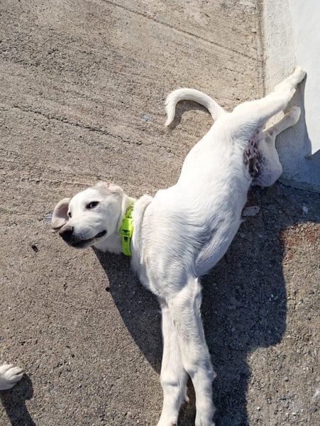 Wolfy ist ein beeindruckender junger Rüde, der mit seinen etwa 6 Monaten bereits rund 35 kg wiegt und vermutlich noch weiter wachsen wird. Trotz seiner Größe ist er ein unglaublich lieber und sanfter Hund.