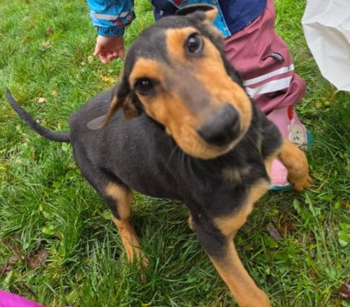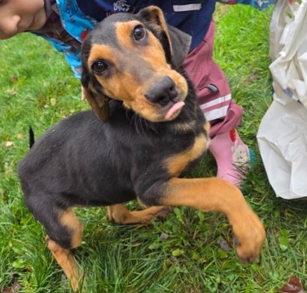 Theo wurde im November 2025 im Tierheim Therapy Dogs and Cats aufgenommen, nachdem er von der Animal Police gefunden und eingefangen wurde.