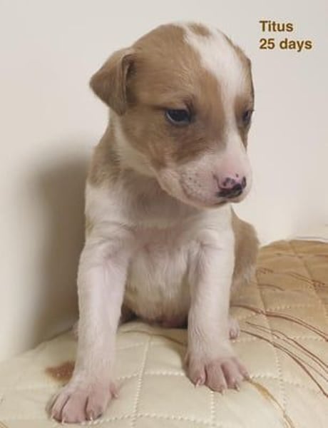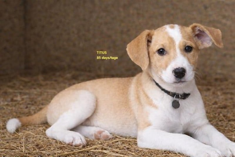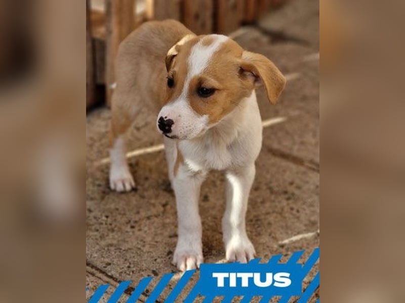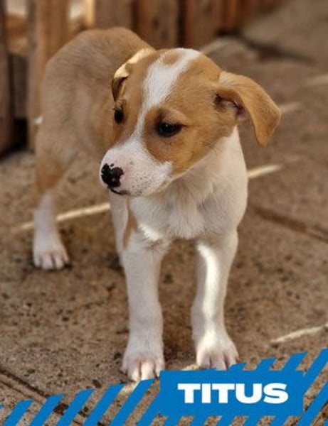 Titus ist einer von vierzehn Welpen, die von einer streunenden Mutter in einem kleinen Dorf geboren wurden. Die Welpen wurden am 10. November 2025 geboren und werden seit dem ersten Tag gemeinsam mit ihrer Mutter liebevoll versorgt. Auch als Hundefreundin mit vielen eigenen Hunden und Katzen war ich schockiert, als ich ihr Nest mit vierzehn Welpen entdeckte. Die Mutter war in einem sehr schlechten Zustand, und ich wusste sofort, dass die Welpen mit ihrer Milch allein keine Überlebenschance hätten. Am zehnten Tag stellte sich heraus, dass sich bereits eine weitere Person um die Mutter kümmerte. Durch einen Zettel, den ich in dem verlassenen Haus hinterließ, kamen wir miteinander in Kontakt. Am 10. November sah sie sie mit hängenden Zitzen, hungrig und um Futter bittend. Sie folgte ihr und entdeckte so das Versteck mit den Welpen. Von da an versorgten wir die Mutter gemeinsam mit hochwertigem Futter. Sie bekam zusätzlich Vitamine und Mineralstoffe, wurde entwurmt und betreut, wie die eigenen Hunde der Pflegestelle. Viele der Welpen wirkten unterernährt. Deshalb begannen wir ab etwa dem 14. Tag, ihre Ernährung mit weichem Royal-Canin-Starterbrei zu ergänzen. Am 23. Tag traf ich die Entscheidung, alle Welpen zu uns nach Hause zu holen. Heute leben die Welpen in einem beheizten Außengehege, das mein Mann speziell für sie gebaut hat. Sie sind sehr sozial, verspielt, sanft, neugierig und zeigen keinerlei Aggressionen.