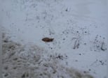 Sie buddelt sich ein Loch in den Schnee, weil es darin wärmer zu sein scheint, als ungeschützt durch den eisigen Wind zu laufen.