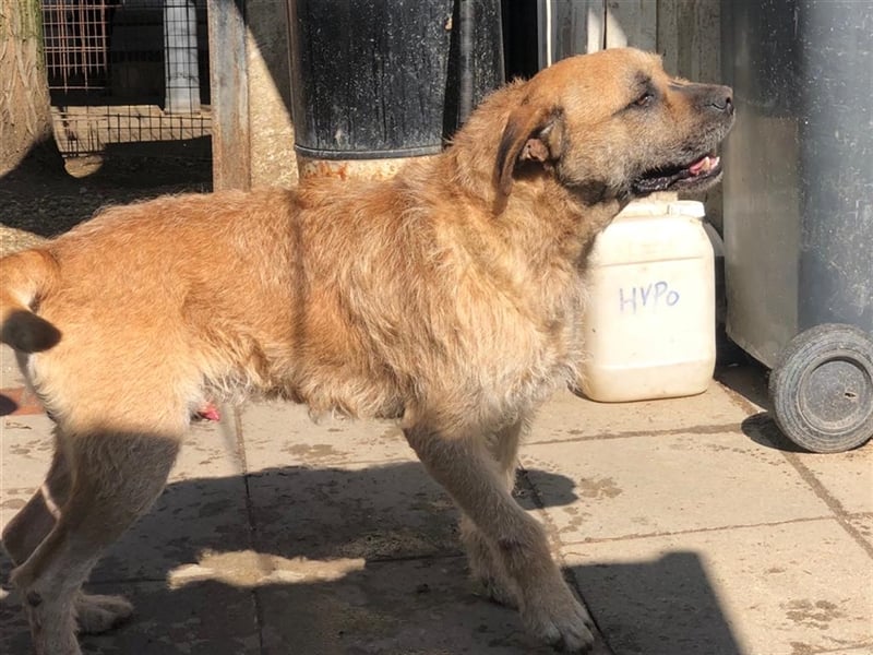 Unser lieber Frenki wurde von unserem engagierten Netzwerk in Ungarn aus einer Tötungsstation gerettet. Er war halb verhungert und dehydriert. Nur noch Haut und Knochen. So fand er den Weg in unser Tierheim. Von seiner Vorgeschichte wissen wir leider nichts. Gut kann sie nicht gewesen sein. Auf jeden Fall mußte er lange Zeit an Hunger und Durst leiden.