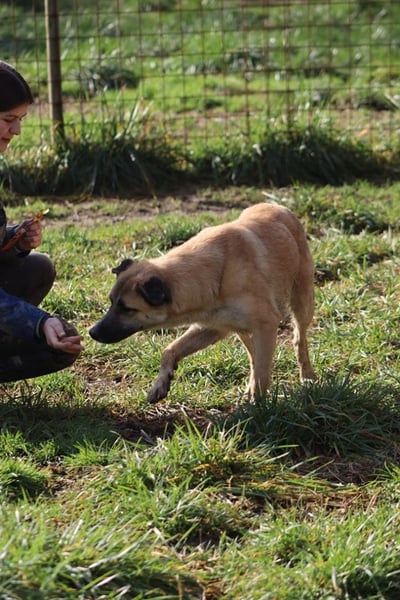 Update Januar 2025 - Life teilt sich derzeit seinen Auslauf mit einer Hündin und einem Rüden und beweist dabei, wie offen und freundlich er ist. Er zeigt keine Scheu vor seinen Artgenossen, ist eher neugierig und stets darauf bedacht, sich in den Alltag einzufügen. Wenn neue Menschen seinen Weg kreuzen, ist er anfangs vor lauter Aufregung ein bisschen hibbelig, doch schon nach kurzer Zeit fasst er Vertrauen, nimmt Leckerchen an und lässt sich gerne anfassen.