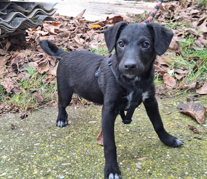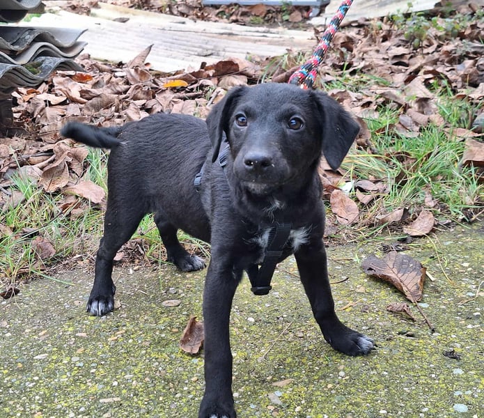 Sie ist ein aufgeschlossenes, verspieltes und liebevolles Hundemädchen, das Menschen gegenüber offen und freundlich begegnet. Mit ihrem glänzenden schwarzen Fell und ihren wachen Augen ist sie eine echte kleine Schönheit, die mit ihrem Charme sofort Herzen gewinnt.