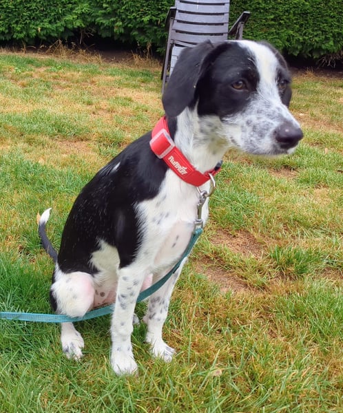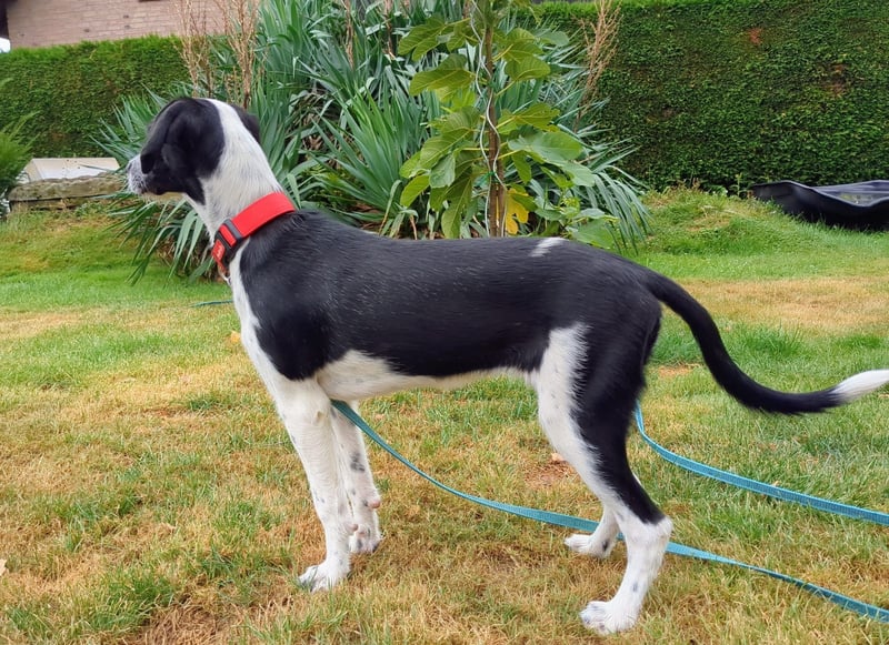 Heute bin ich nämlich ein fröhliches, verspieltes Hundemädchen von etwa 7 kg und messe momentan 43 cm an der Schulter. Ich bin noch jung, geboren im April 2025 und wachse also wohl noch ein wenig. Vor allem aber wächst mein Mut, meine Neugier und mein Vertrauen in die Welt.