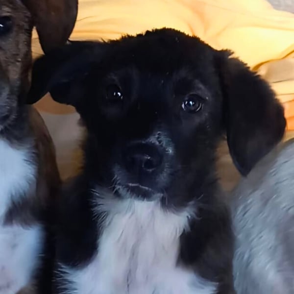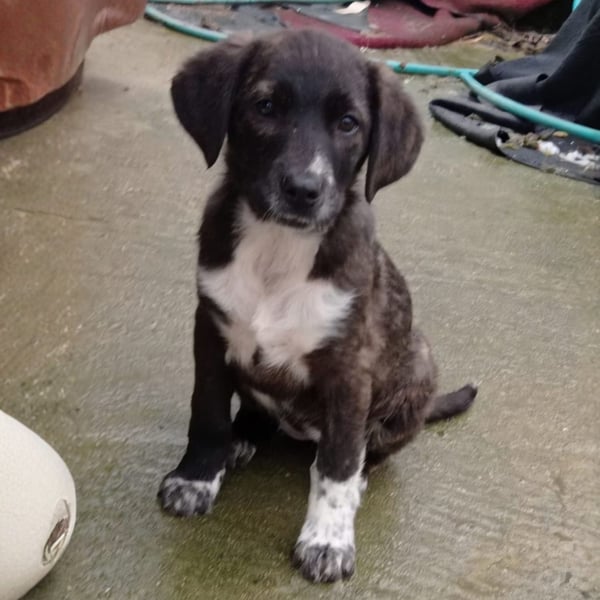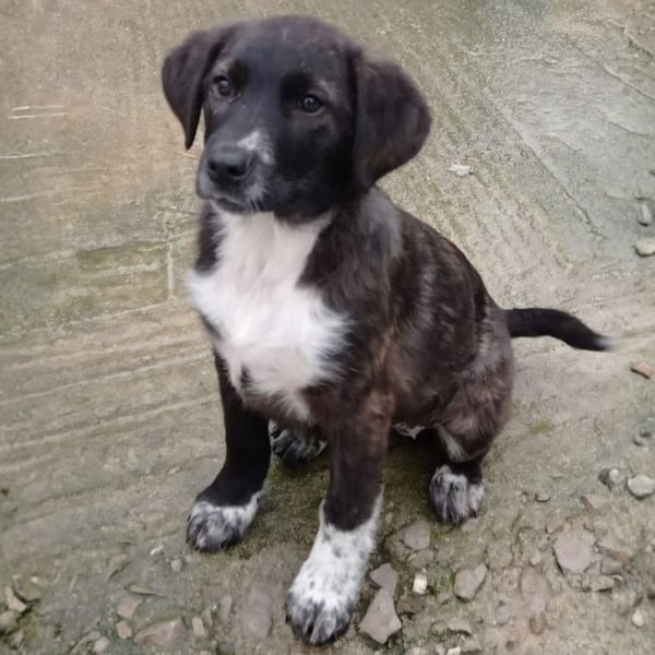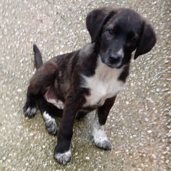 Gaia gehört zu einer Gruppe von sechs Welpen (fünf Hündinnen und ein Rüde), die am Weihnachtsabend herzlos einfach vor dem Haus von Evi ausgesetzt wurden. Ohne Schutz und Versorgung hätten die kleinen Hunde kaum eine Chance gehabt. Glücklicherweise wurden sie rechtzeitig entdeckt und in Sicherheit gebracht. Wir gehen davon aus, dass die Welpen nicht alle aus demselben Wurf stammen.