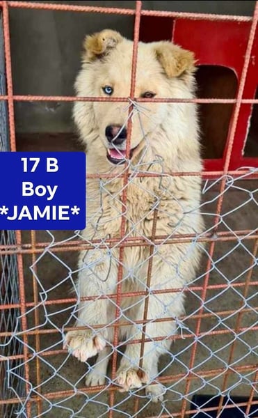 Zu diesem Zeitpunkt war er sehr abgemagert und traurig. Seit seiner Rettung befindet sich Jamie in einem privaten Tierheim in Rumänien, hat sich gut erholt und sich zu einem großen Schatz entwickelt.