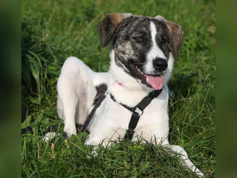 Londons Geschichte: London ist die Tochter von Machi, einer scheuen Straßenhündin in einem Dorf bei Drama. Da Machi Menschen nicht an sich heranließ, konnte sie nicht kastriert werden und brachte London und ihre sechs Geschwister zur Welt – natürlich an einem versteckten Ort. Machi wurde von den Tierschützer:innen mit Futter versorgt, sie kam auch zum Essen, aber ihre Babys hielt sie „geheim“. Eines Morgens Anfang April benachrichtigten Einwohner des Dorfes eine Tierschützerin von Pawmates Rescue, dass im Dorf ein Hund läge mit Schaum vor dem Mund. Die Tierschützerin ging sofort zu dem beschriebenen Ort und stellte fest, dass es Machi war und dass sie wohl jemand hatte vergiften wollen. Es war Sonntag, keine Tierarztpraxis geöffnet, aber zum Glück hatte die Tierschützerin ein geeignetes Gegenmittel, das sie Machi spritzen konnte. Und Machi kämpfte sich ins Leben zurück – sie wollte leben für ihre Babys. Nachdem Machi sich nach zwei Tagen erholt hatte, begann sie, der Tierschützerin ihre Babys zu zeigen und brachte diese sogar zu deren Haus. Sieben süße Babys, zwei Jungen und fünf Mädchen – eines davon London. Machi ist den Menschen gegenüber weiterhin sehr misstrauisch, aber sie lässt sich von der Tierschützerin versorgen. Machi kann wohl bald eingefangen und kastriert werden, denn die Kleinen sind inzwischen entwöhnt und haben angefangen, Trockenfutter zu essen. Sind Sie für London das „endgültige“ Happy-End? (07.05.2025)