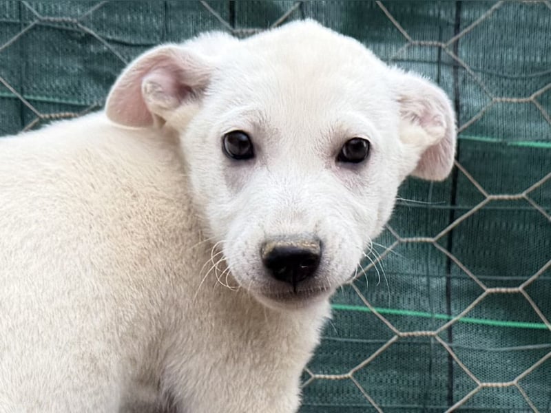 Optisch erinnert Marilu an ein kleines Eisbärbaby, charakterlich ist sie ganz Welpe: süß, verspielt, lieb und zum Verlieben. Im Moment noch etwas zurückhaltend, taut sie aber sehr schnell auf und zeigt dann, wie kuschelig sie eigentlich ist.