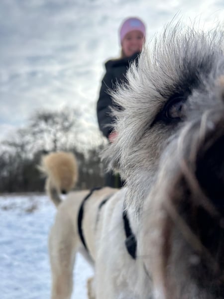 Leonie ist stubenrein, kann gut für ein paar Stunden alleine sein und auch der Rückruf klappt ebenfalls schon sehr gut. Auf Spaziergängen orientiert sie generell sehr gut an ihrer Bezugsperson und kommt auch unaufgefordert immer wieder selbst zurück zu ihrem Menschen (besonders beim Spielen mit anderen Hunden).