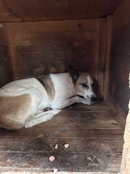 In ihrem bisherigen Leben hatte sie leider kaum schöne Erfahrungen. Sie kennt weder das Leben im Haus noch den engen Kontakt zu Menschen. Deshalb ist sie noch ängstlich und zieht sich in unserer Auffangstation in ihre Hütte zurück. Doch mit Zeit, Ruhe und liebevoller Unterstützung kann sie lernen, Vertrauen zu fassen und ihr Leben neu zu entdecken.