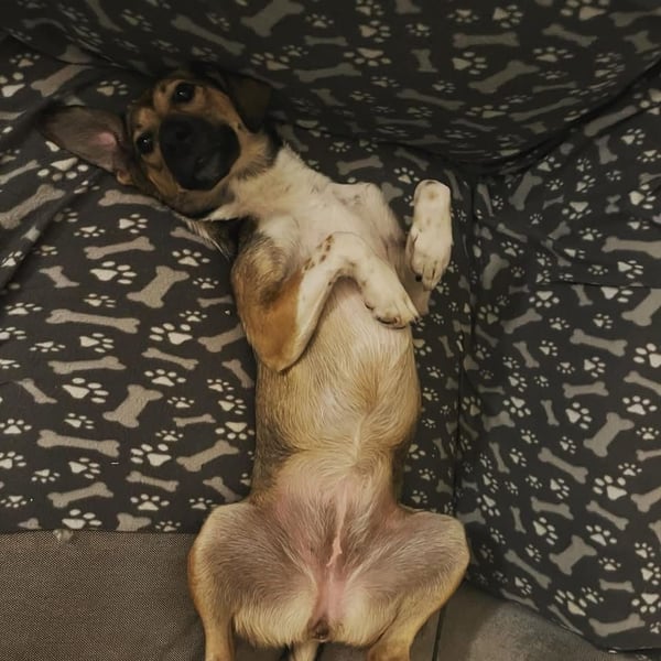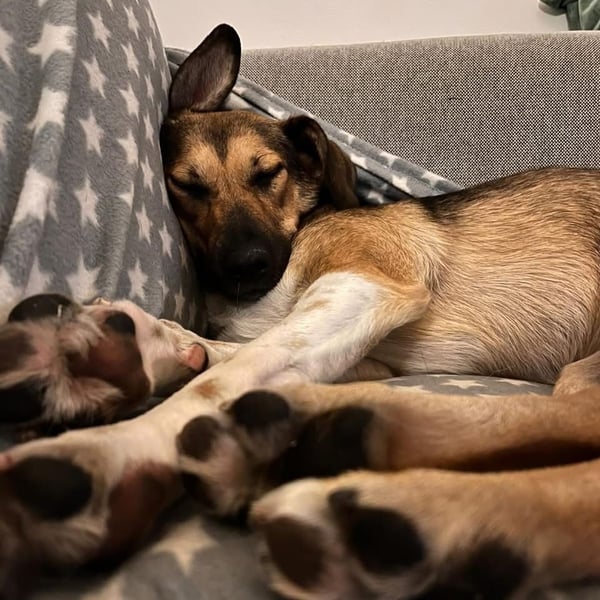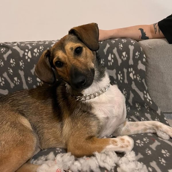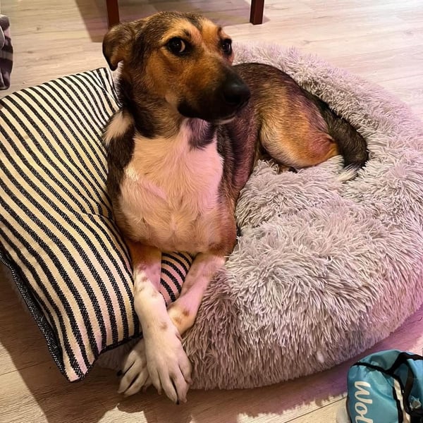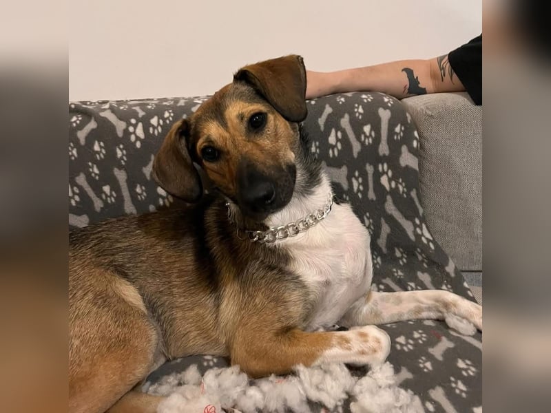 Alma ist eine ruhige Hündin, die ihren Alltag gern entspannt angeht. In ihrer Pflegestelle ruht sie viel, spielt ab und zu und zeigt klar, wann sie ihre Ruhe möchte. Das Alleinsein fällt ihr aktuell noch schwer – hier braucht sie Menschen, die das langsam und behutsam mit ihr üben.
