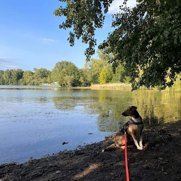 Draußen zeigt sie eine andere Seite: aufmerksam, schnell erschrocken und vorsichtig. Leckerlis nimmt sie draußen kaum an, weil sie alles genau im Blick behalten muss. In der Natur läuft sie gern – je ruhiger die Umgebung, desto wohler fühlt sie sich. Deshalb suchen wir für Alma ein Zuhause außerhalb der Stadt.