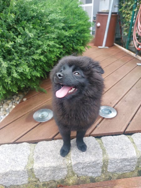Wie alle Welpen aus dem Wurf ist er ein aufgewecktes kleines schwarzes Fellknäul :D