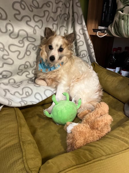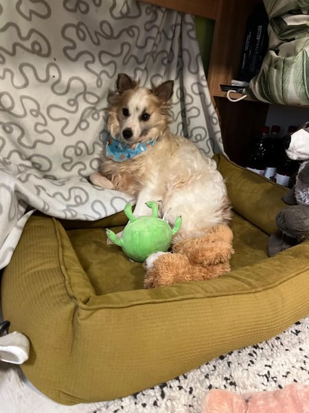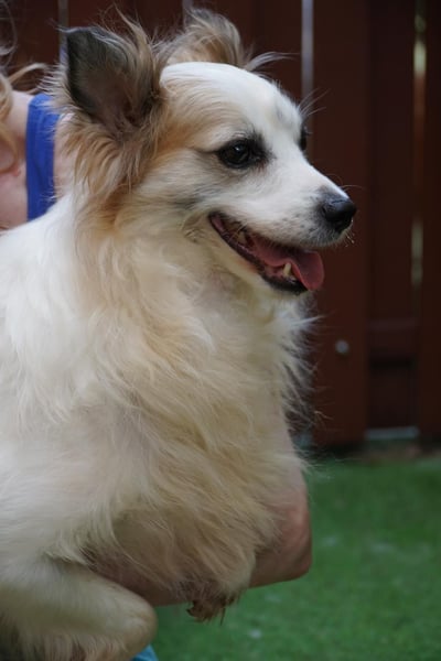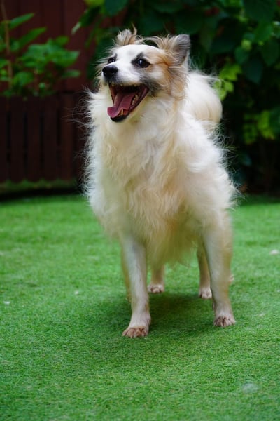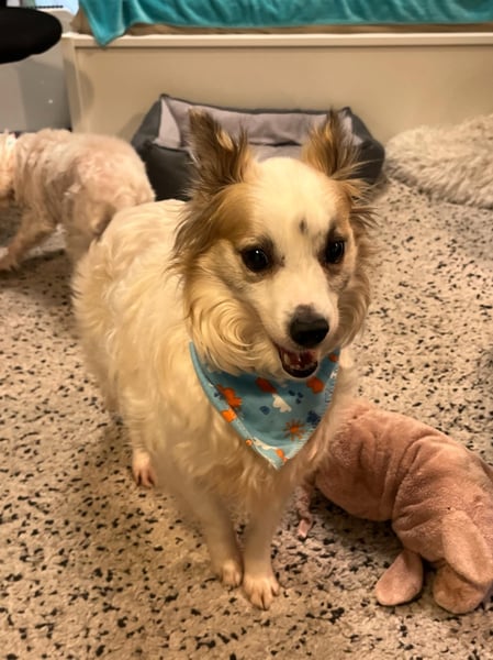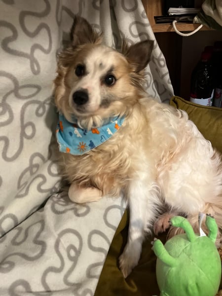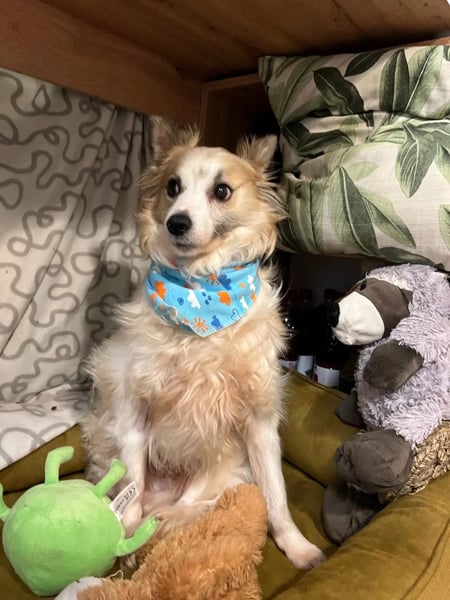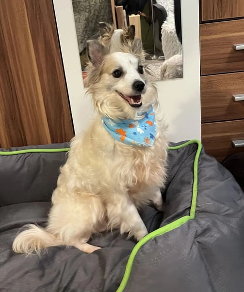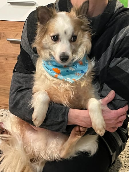 Mit anderen Hunden versteht er sich gut. Er liebt es, mit seinen Artgenossen zu spielen und zeigt sich dabei eher unterwürfig und sanft. Er ist ein unkomplizierter, kleiner Schatz, der mit ein bisschen Geduld schnell Vertrauen fasst und aufblüht.