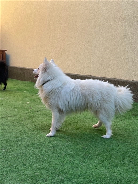 Ich bin der Ted und wurde im März 2022 geboren. Wie man sehen kann bin ich ein sehr hübscher, 33 cm großer, weißer und 9,7 kg schwerer Mittelspitz.