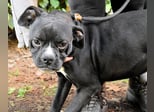 „Hallo! Ich bin Cedrick, mittelklein, mittelrund im Kopf – und vollgepackt mit Energie, die manchmal schneller ist als meine eigenen Gedanken. Ich wohne hier im Lager in einem Zwinger mit Rüden und Hündinnen zusammen. Das klappt gut – ich mag alle und alle mögen mich… oder sie sind einfach zu verdutzt, um etwas anderes zu tun. Denn eines kann man nicht überhören : ich atme. Laut. Sehr laut. Nicht, weil ich alt bin, nicht, weil ich krank bin –sondern weil mein Kopf eine charaktervolle Rundung hat, die beim Atmen gern ein bisschen Soundeffekt erzeugt. Ich schnaufe, schnorche, ruckle –wie du vielleicht nach einem Marathon. Die Tierschützer sagen, ich wirke, als wäre ich ständig leicht außer Atem. Ich sage: „Ich bin einfach ein akustisches Erlebnis.“