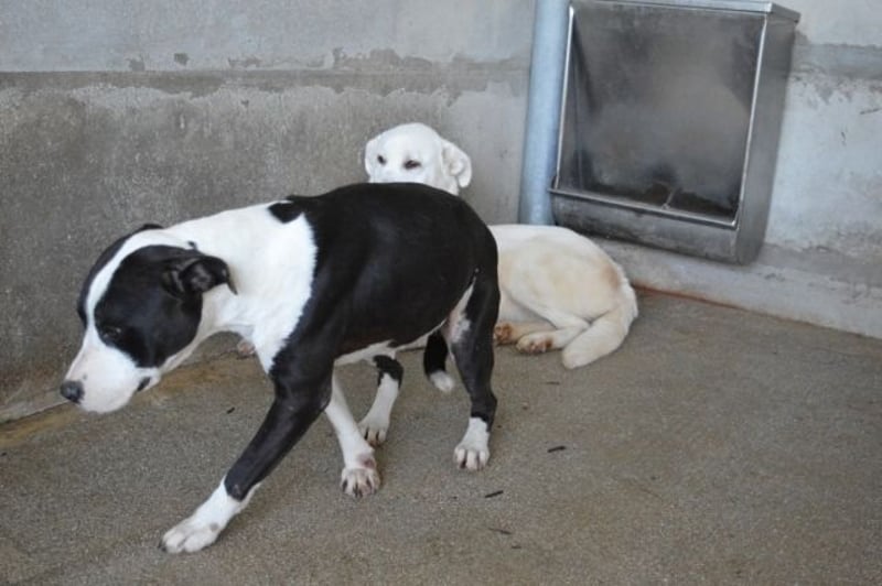 Was macht eine kleine Hündin, die überhaupt nicht weiß, warum ihr das alles passiert ist, wenn es wie durch ein Wunder plötzlich scheint, als würde Hilfe nahen? Wenn Menschen zu ihr kommen, die sie vielleicht mitnehmen könnten, weg von diesem trostlosen Ort? Nun, zunächst versucht sie sich zurechtzufinden. Aber als die Menschen näherkommen und freundlich sind, gibt sie alles: Jeder, der nah genug ist, bekommt Küsschen von Isaette. Und nicht nur eines, sondern so viel wie möglich. Dabei drängt sie sich nicht vor. Cyra, mit der sie einträchtig ihre Zelle teilt, ist einfach nur ein wenig zurückhaltender…Die Leine scheint die kleine Isaette auch zu kennen, UND sie weiß auch, wofür so eine Leine da ist: zum Spazieren. Aber in der Grube kann man nicht spazieren, also heißt „Leine“ wohl, dass es endlich rausgeht, dorthin, wo man spazieren gehen kann (Anm.: das heißt es leider nicht in diesem Lager, aber Isaette zeigt auch im Zwinger trotzdem, was sie kann).