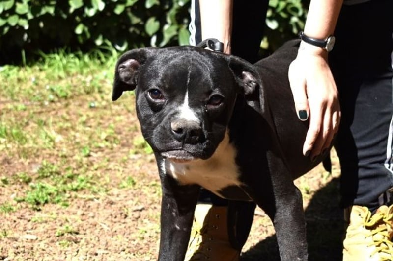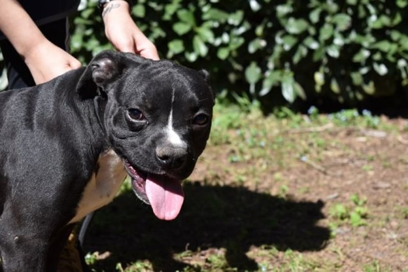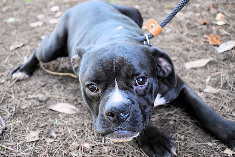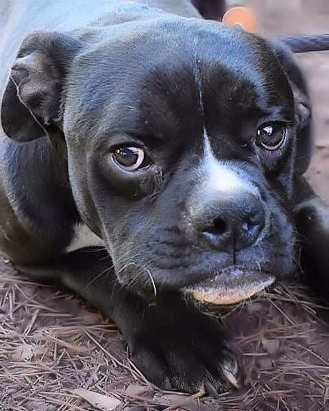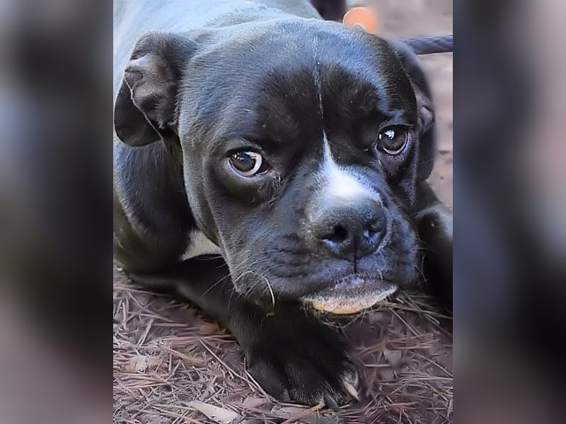 „Hallo! Ich bin Cedrick, mittelklein, mittelrund im Kopf – und vollgepackt mit Energie, die manchmal schneller ist als meine eigenen Gedanken. Ich wohne hier im Lager in einem Zwinger mit Rüden und Hündinnen zusammen. Das klappt gut – ich mag alle und alle mögen mich… oder sie sind einfach zu verdutzt, um etwas anderes zu tun. Denn eines kann man nicht überhören : ich atme. Laut. Sehr laut. Nicht, weil ich alt bin, nicht, weil ich krank bin –sondern weil mein Kopf eine charaktervolle Rundung hat, die beim Atmen gern ein bisschen Soundeffekt erzeugt. Ich schnaufe, schnorche, ruckle –wie du vielleicht nach einem Marathon. Die Tierschützer sagen, ich wirke, als wäre ich ständig leicht außer Atem. Ich sage: „Ich bin einfach ein akustisches Erlebnis.“