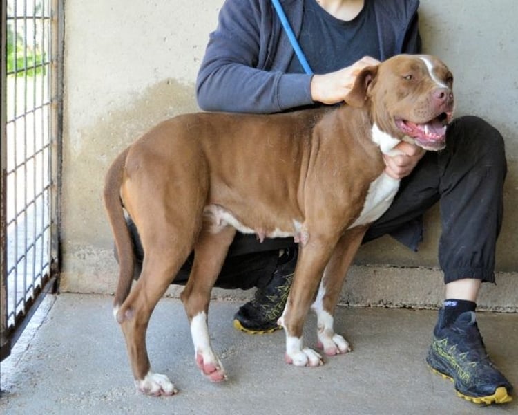 Denn Olena hat tatsächlich ein überaus freundliches Gemüt und auf einigen der Fotos kann man gut erkennen, wie sie über ihr ganzes hübsches Gesicht strahlt. Der Anlass dafür ist „sonnenklar“: menschliche Gesellschaft. Auf die muss Olena allerdings schon seit einem halben Jahr (Stand Juni 2025) die meiste Zeit über verzichten, denn die athletische Hündin im besten Alter sitzt in einem italienischen Canile-Zwinger fest. Wie so oft haben wir keine Kenntnis darüber, warum sie dort gelandet ist. Und wir wissen auch nicht, wie Olenas Leben bis zu diesem schicksalhaften Tag im Januar 2025 ausgesehen hat.