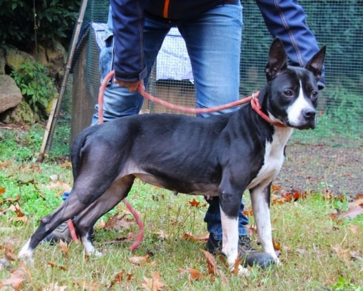 Sie ist ein Molosser Mix, das sind (manchmal auch kleinere) Kraftpakete, muskulös, mit aufrichtigen Verteidigungsabsichten