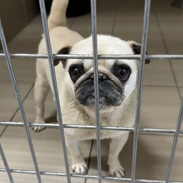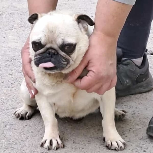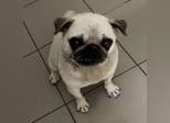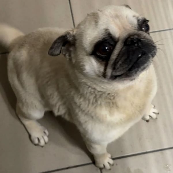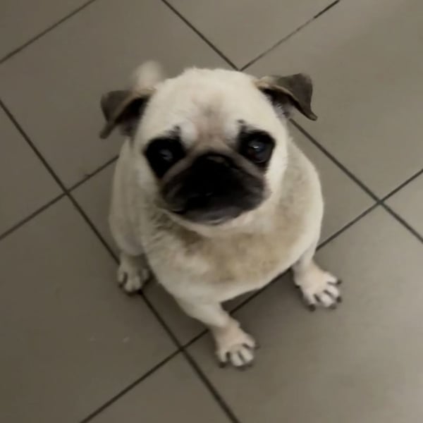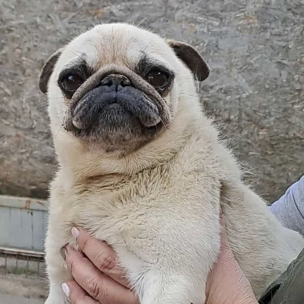 Ihre Rute ist nicht wie bei einem typischen Mops, sondern gerade.