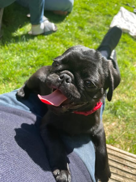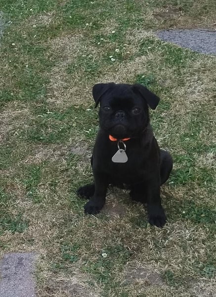 Cosmo ist 10 Monate alt und reinrassig, allerdings ohne Papiere. Seine Vater ist ein Altdeutscher Mops, sein Mama eine Mopsdame.