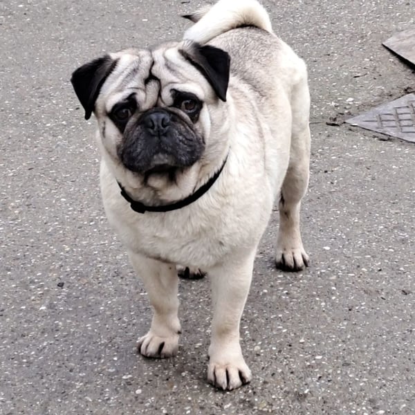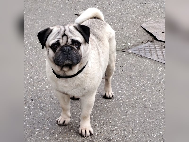 Mops Mopo hatte in Ungarn ein Zuhause, jedoch lief er nachts allein auf der Straße umher.