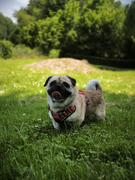 Geht sehr gerne spazieren – braucht aber viele Pausen (brachyzephal)
