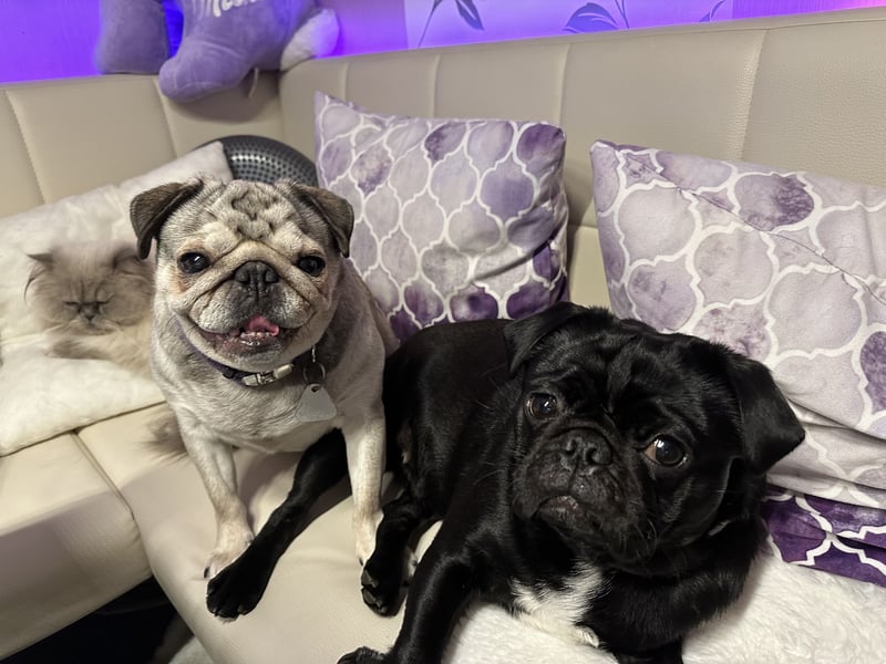 Schweren Herzen müssen wir uns leider von unseren beiden wunderschönen Mops Hunden verabschieden Dana ( 5 Jahre ) besondere Farbe Chinchilla und Micky ( 2 Jahre ) in Farbe Schwarz/Weiß.