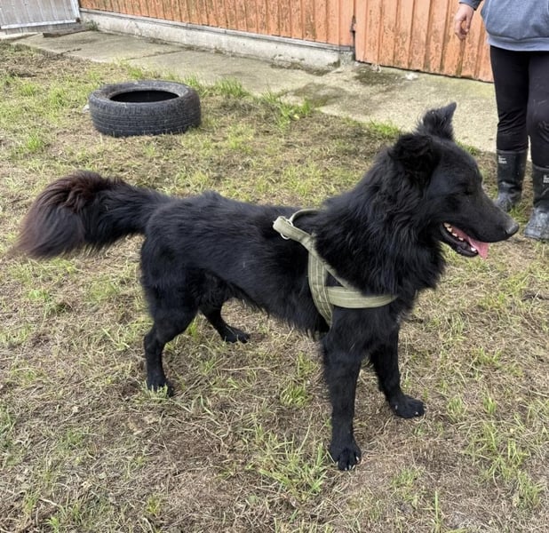 Moon ist ein Bub, laut Tierarztschätzung ca. 2 Jahre alt (geb. 29.12.2023). Er ist etwa 55-60 cm groß und wiegt 22 kg.