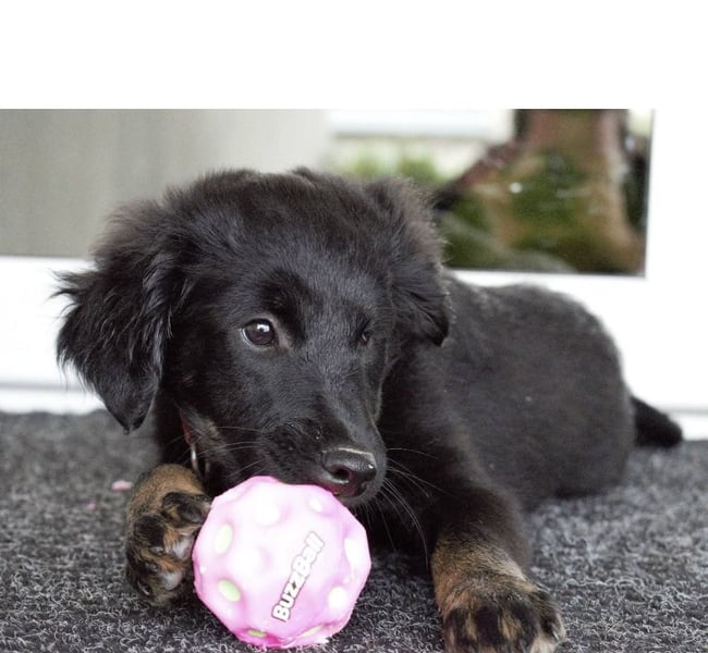 Megi ist ein Mädchen, sie ist laut Tierarztschätzung knapp 4 Monate alt (geb. 01.07.2025), wiegt zur Zeit 5 kg und ist 32 cm groß. Sie ist ein Mudi-Kroatischer Schäferhund-Mix.
