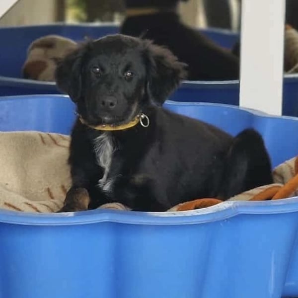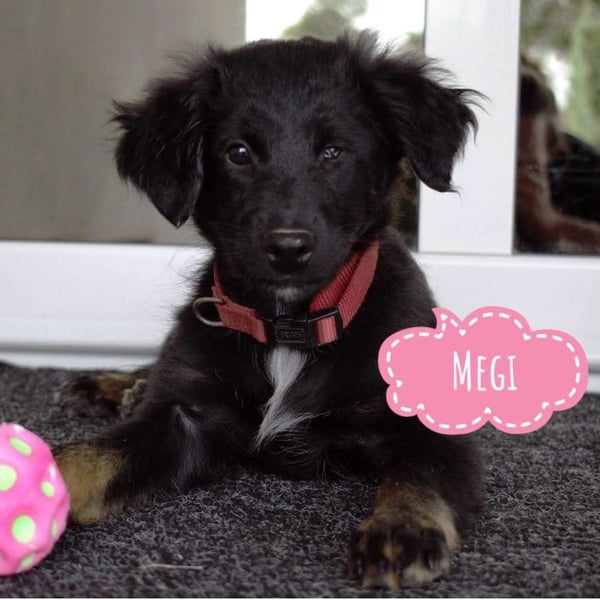 Megi und ihre Schwester kamen zur Welt, nachdem sich ihre streunende Mutter in einem Hof niedergelassen und dort ihre Welpen geboren hatte. Eines der Babys hat es leider nicht geschafft und ein Bruderchen ist bereits vermittelt.
