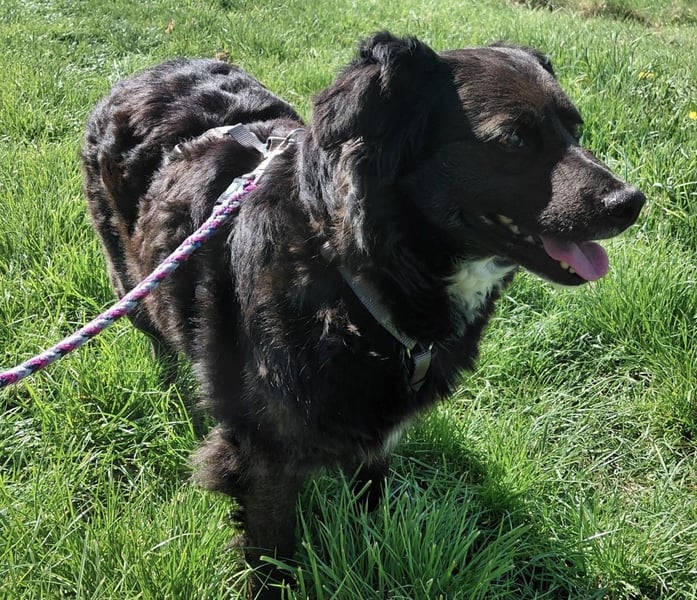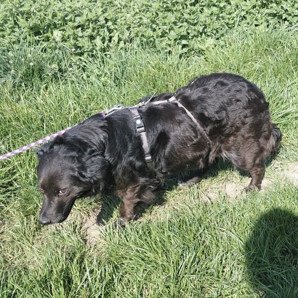 Luna ist ein Mädchen, sie ist laut Tierarztschätzung ca. 6,5 Jahre alt (geb. 01.09.2019), wiegt 19kg und ist 40-45cm groß. Vermutet wird ein Mudi Mischling.