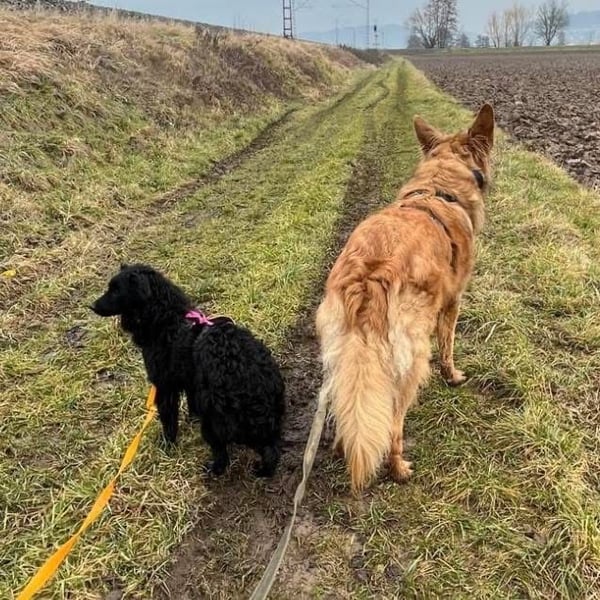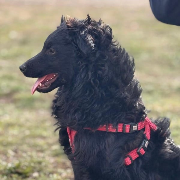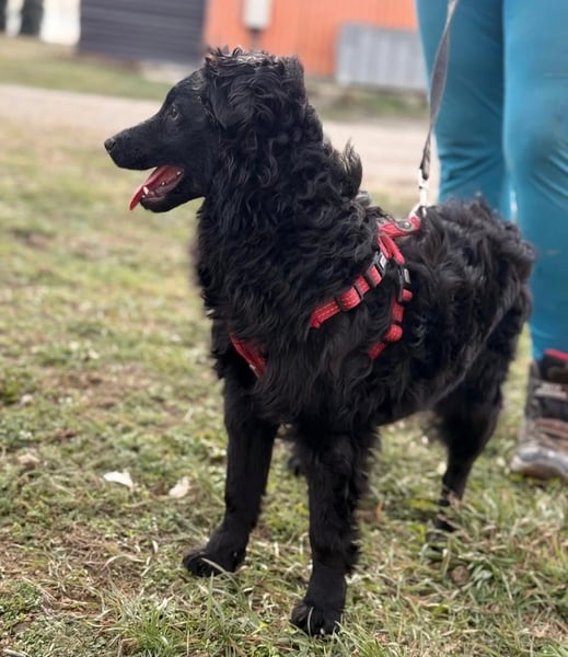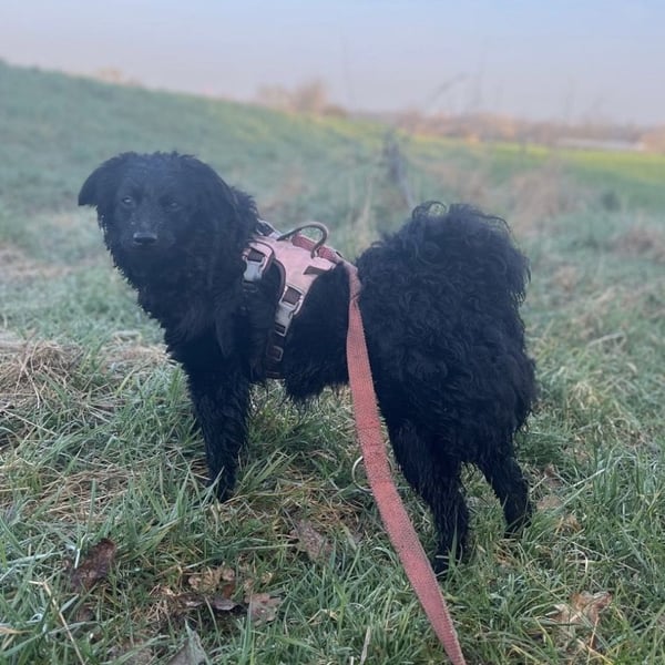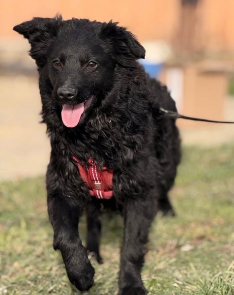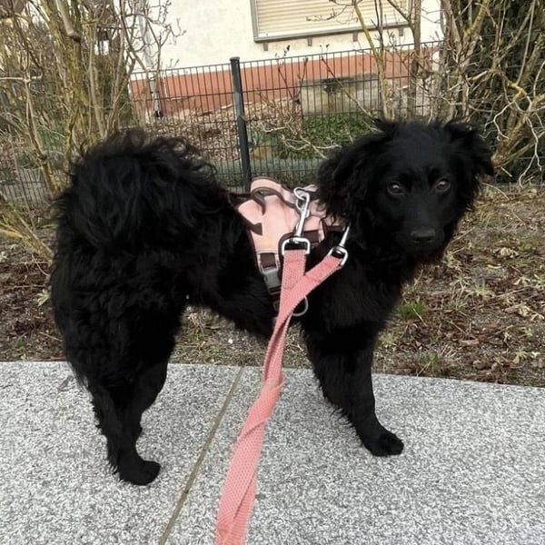 Asia ist ein Mädchen, sie ist ca. 10 Monate alt (geb. 21.04.2025), wiegt nur ca. 8kg und ist 40cm groß. Sie ist sicherlich ein sehr zierlicher Mudi – Kroatischer Schäferhund Mischling.