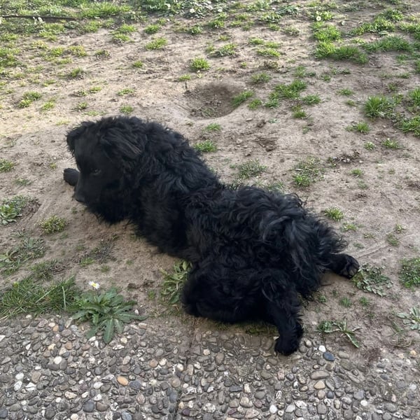Asia ist noch nicht 100% stubenrein. Sie macht brav draußen, es kann aber auch mal ein kleines Missgeschick passieren. Das ist natürlich auch verständlich, sie ist erst seit kurzem auf der Pflegestelle.