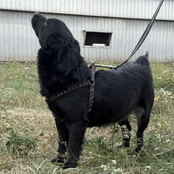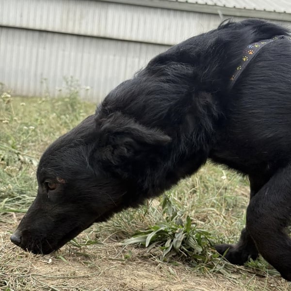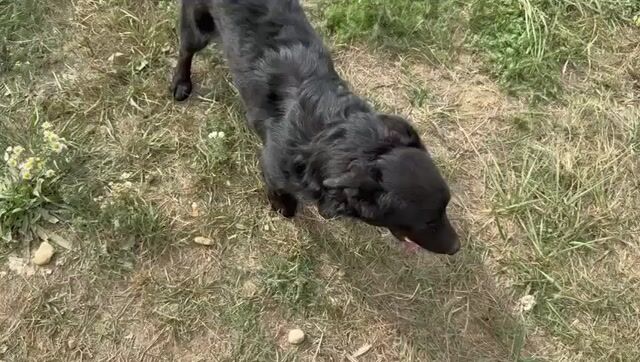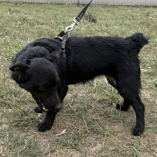 Pia ist ein Mädchen, laut Tierarztschätzung ca. 1 Jahr alt (geb. 01.11.2024). Sie wiegt 10,3 kg und ist 36 cm groß. Vermutet wird, dass sie ein Dackel-Mudi-Mix ist. Sie ist mit kurzer Rute geboren.