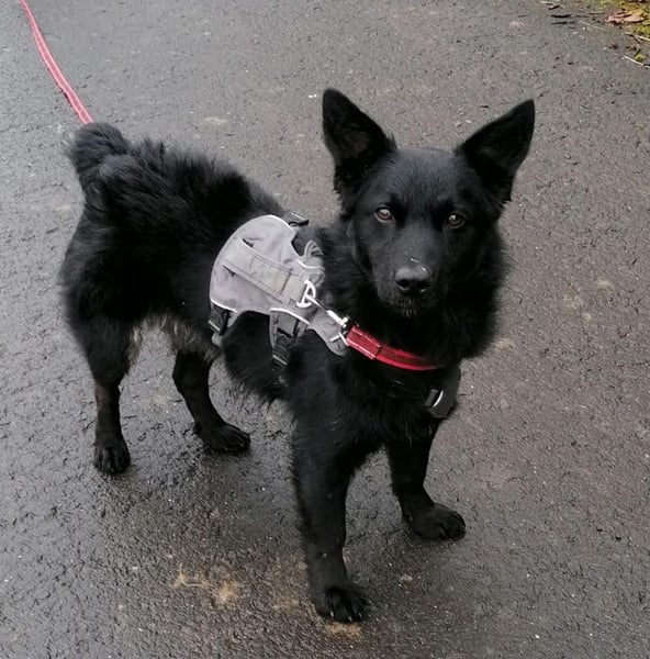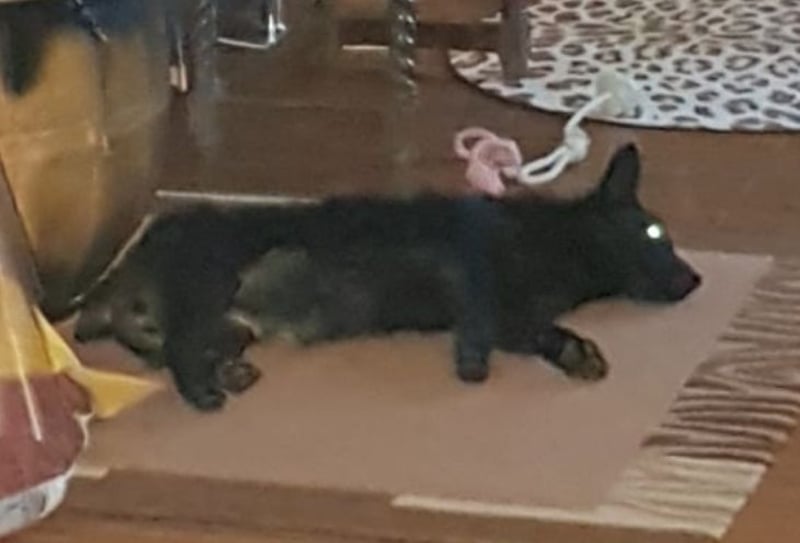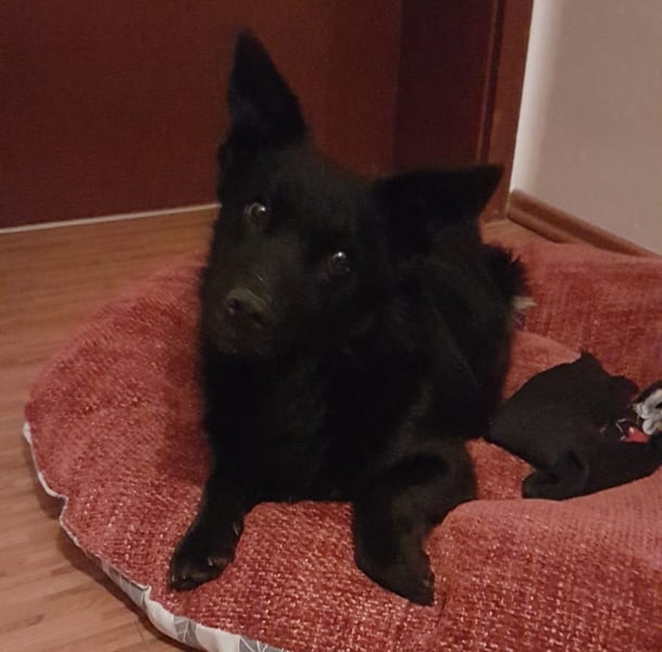 Pia ist ein Mädchen, laut Tierarztschätzung ca. 1 Jahr alt (geb. 01.11.2024). Sie wiegt 10,3 kg und ist 36 cm groß. Vermutet wird, dass sie ein Dackel-Mudi-Mix ist. Sie ist mit kurzer Rute geboren.
