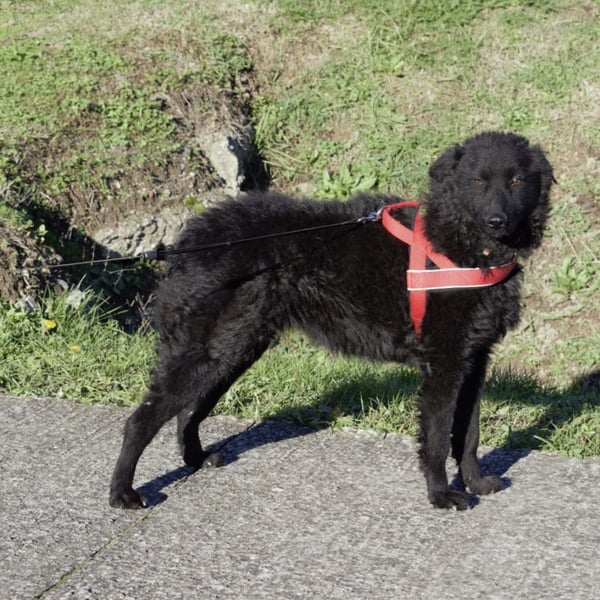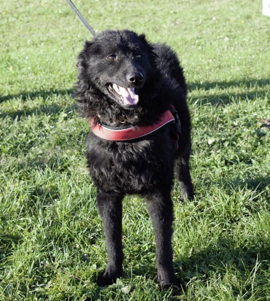 Kairo ist ein Mädchen, laut Tierarztschätzung ca. 1 Jahr alt (geb. 01.11.2024), 43 cm groß und 13 kg schwer. Vermutet wird ein Mudi-Kroatischer Schäferhund Mischling, sie wurde auch rassentypisch ohne Rute geboren.
