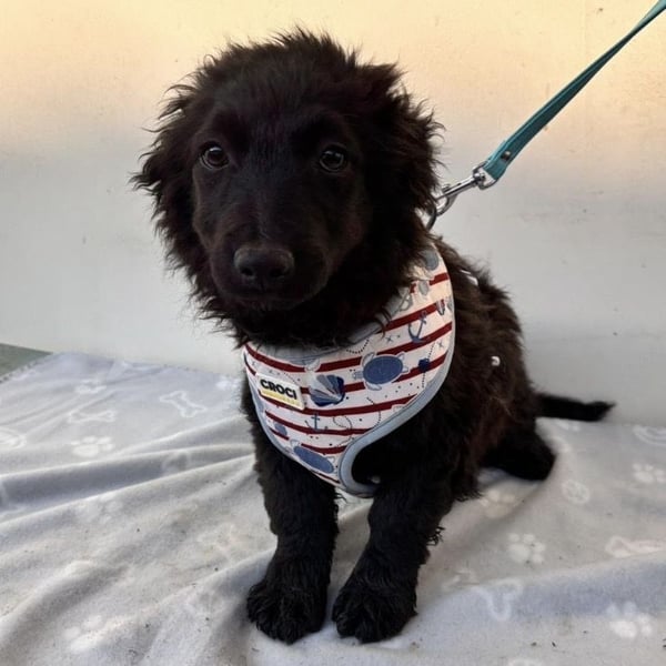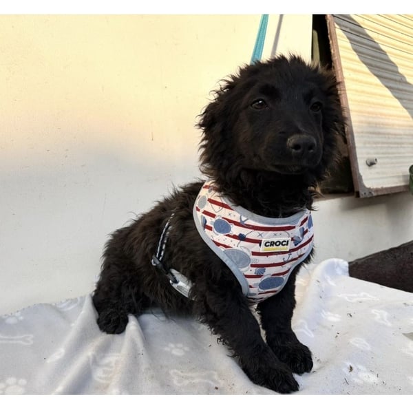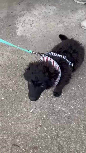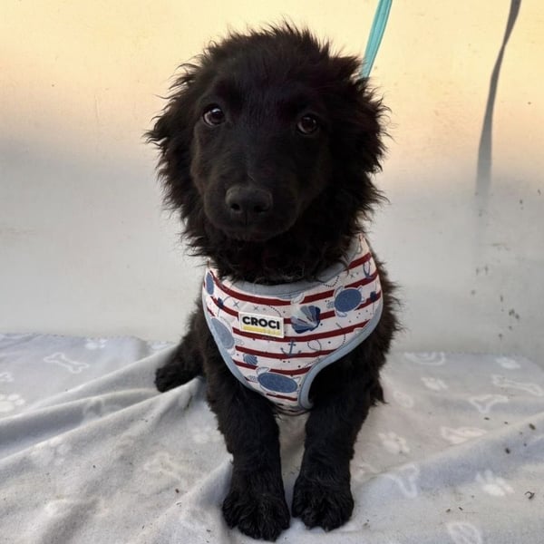 Vjera ist ein Mädchen, laut Tierarztschätzung ca. 4 Monate alt (geb. 05.12.2025), wiegt zur Zeit 7 kg und ist 30 cm groß. Vermutet wird ein Mudi/Pulin - Dackel Mischling. Sie hat kurze Beinchen, ausgewachsen wird sie voraussichtlich ca. 15kg mit max. 35-40cm Schulterhöhe.