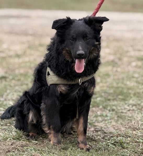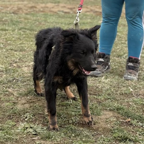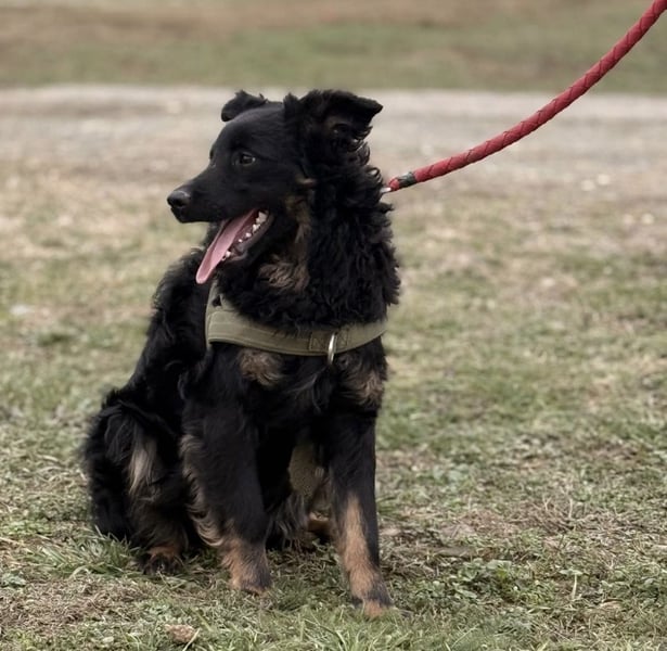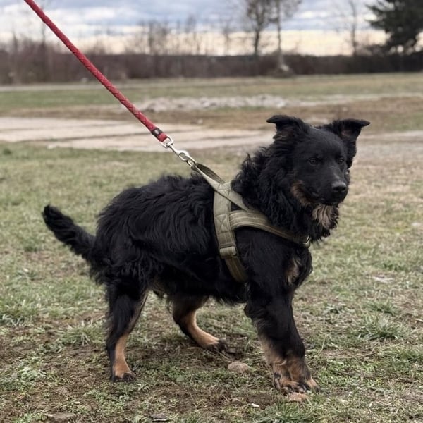 Atlas ist ein Rüde, er ist laut Tierarztschätzung ca. 8 Monate alt (geb. 21.04.2025), wiegt 14,7 kg und ist 47 cm groß. Er ist ein junger, mittelgroßer Hund, vermutet wird ein Mudi – Kroatischer Schäferhund Mischling. Sein Fell ist weich wie Plüsch.