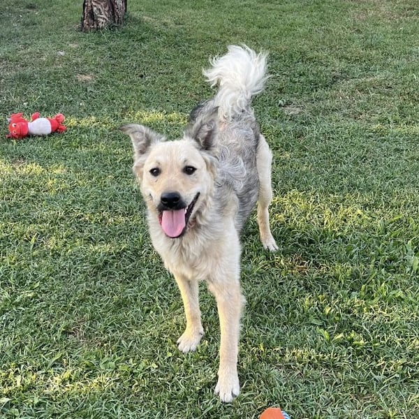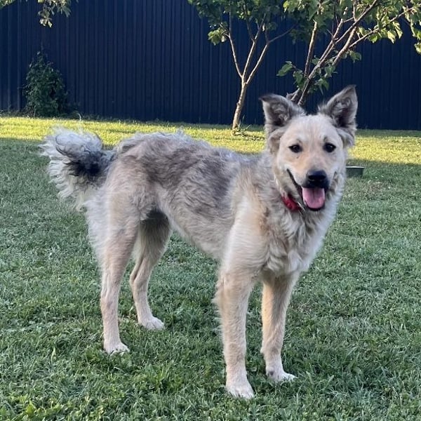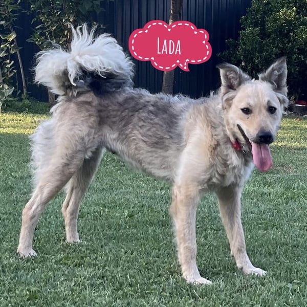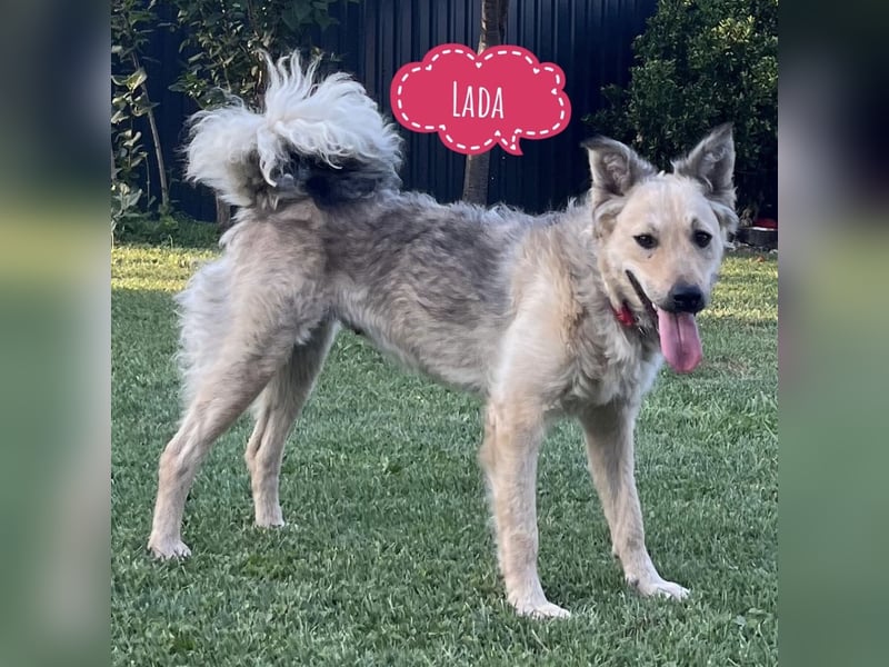 Lada ist ein Mädchen, sie ist laut Tierarztschätzung ca. 1 Jahr alt (geb. 11.07.2024), wiegt 25kg und ist 52cm groß. Vermutet wird ein Creme Mudi (Mischling). Falls jemand aber über die Rasse etwas sagen kann, wären wir für Infos dankbar.